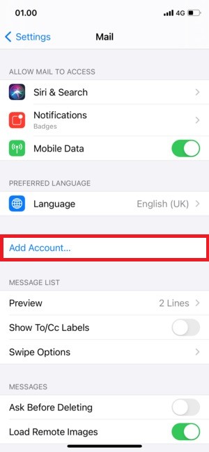 3)Tap Add Account. |