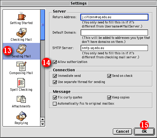 | 6)Type in your name as you would like it to appear in outgoing mail |