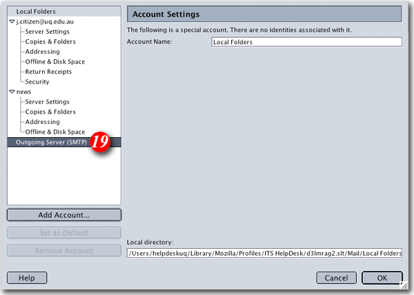 | 19)Highlight 'Outgoing Server (SMTP)' |