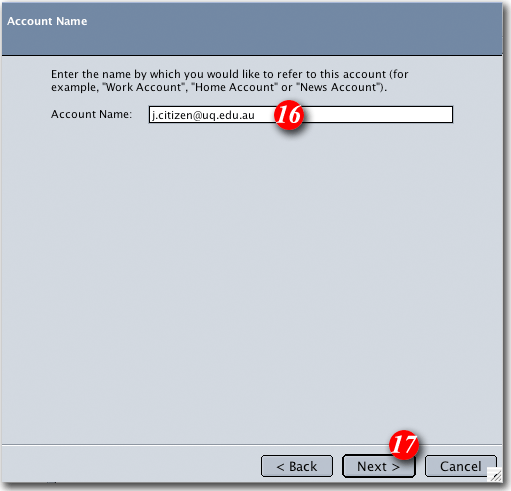 | 16)Type in a name for the account. You can enter anything you like in this area, but it's a go.d idea to enter something that will allow you to easily recognise the account |