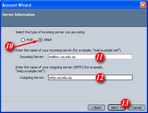 | 10)Select the 'IMAP' option. |