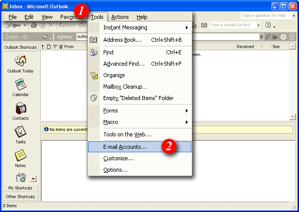 | 2)Select 'E-mail Accounts...'. | ||||