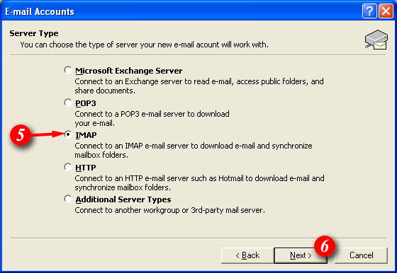 | 5)Put a dot next to the 'IMAP' option. | ||||