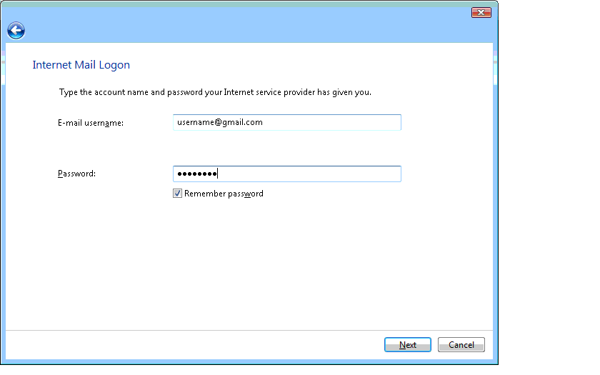 | 3) Enter your complete e-mail address, and click Next. |