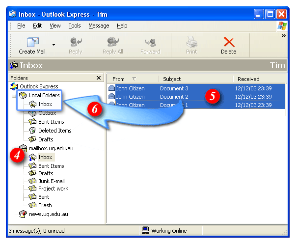 2)Examine the folder list on the left of the screen. Your 'Local Folders' are displayed at the top of the window, and as their name would suggest, are stored locally on your PC. Messages in your local folders do NOT count towards your mail quota.