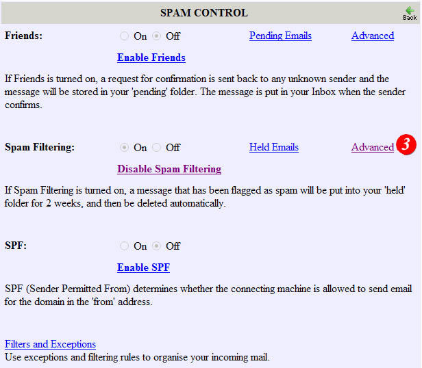| 2)Click the 'Spam Control ' link |