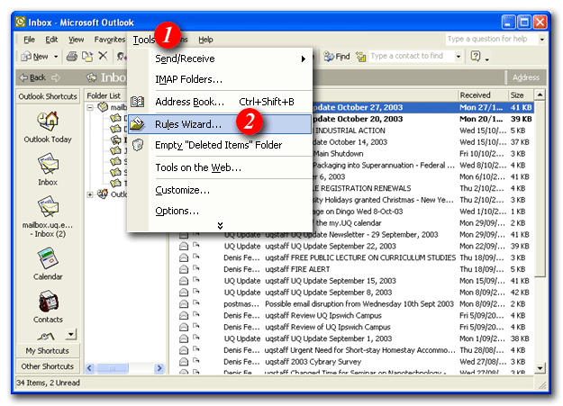 2)Select 'Rules Wizard...' from the drop list