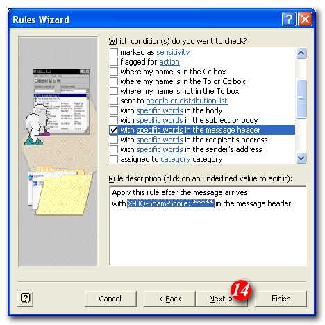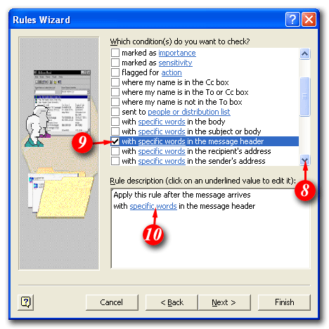 9)Put a tick in the 'with specific words in the message header' checkbox
