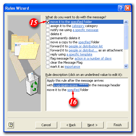 15)Put a tick in the 'move it to the specified folder' checkbox