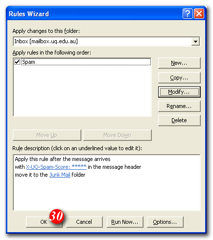 28)Put a tick in the 'Run this rule now on messages already in the "Inbox"' checkbox (optional)