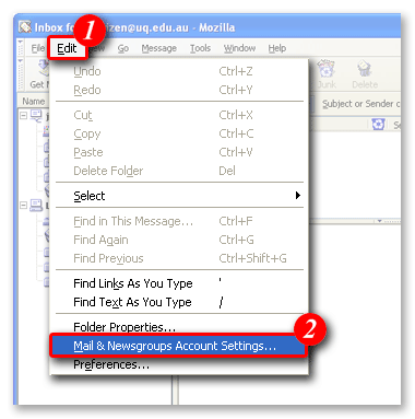 2)Select 'Mail & Newsgroups Account Settings...'