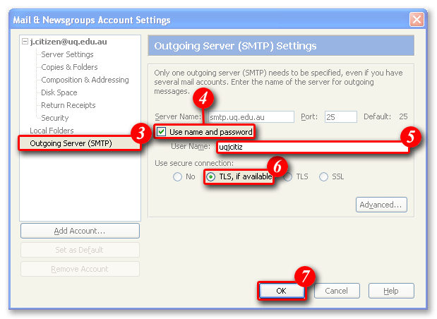 Once Mozilla is setup you will need to authenticate to the UQ Secure SMTP server.